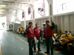 ← AM7:00集合 くもり空! 雨が心配だがツーリング決行 → 金谷8:25発のフェリーに 滑り込み乗船 |