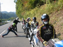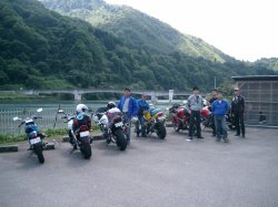 ← 亀山ダムにて! ※注意 本日ガス欠1名 リザーブタンクを使ったら、給油後に コックをONに戻すのを忘れずに! |