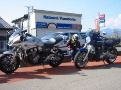 ←本日、トラブル発生。燃料ポンプからのガソリン漏れ。 ビニールテープで応急処置完了。 →初ツーリングからトラブル発生している奴もいるし、賽銭、奮発しておくか!〜チャリン〜 小銭かよ! →今年もツーリングで事故がないように...とか! |
