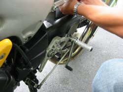 ← トラブル発生! 常磐道走行中にシフトペダルの 取り付けビスが脱落。 泥除けのビス代用で応急処置! → ホームセンターでビス購入 一安心! |