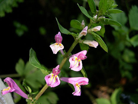 特長 | 半寄生植物の1年草。花冠は筒状で先は唇形となる。下唇は浅く3裂し、内面に2条の隆起がある。苞のふちに刺毛状の歯牙が散生する。 |