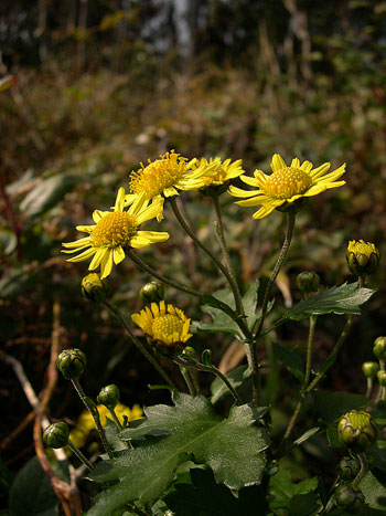 特長 | 山麓の日当たりの良いところに生える多年草。九州などでは古くから栽培されていた。頭花は黄色で直径2.5〜4cm。 |