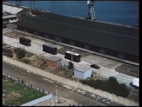 鳥が舞う場面で画面転換。再び輸送シーンですが港に到着したようです。音楽は再度「One Roard」です。