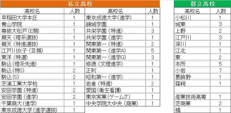 中学生:小岩1中・3中・4中・桜道中・奥戸中・高砂中の生徒