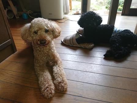今日も雨が降っている。犬たちは庭に出れないので不満そうだ。