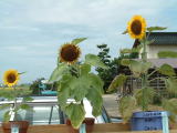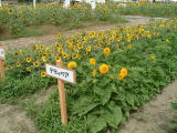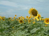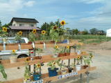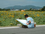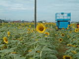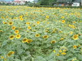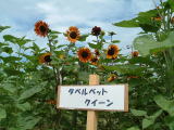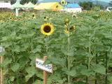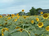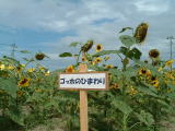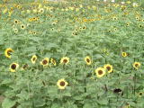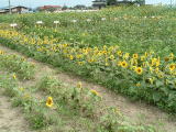 出雲空港近くに咲いているひまわりです。 ここはオーナー制度があり県外の人たちを含め、 たくさんの人たちの名前がありました。 ひまわりにも色々な種類があり色も黄色だけではなく、 えんじや赤があります。 夏休みの宿題の絵を描いている子供の姿も見えます。