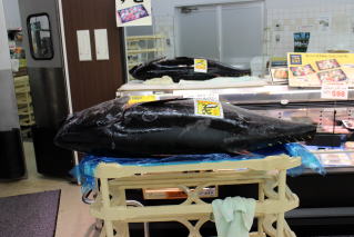 昨日は売上起死回生の為マグロの解体実演販売を行いました。