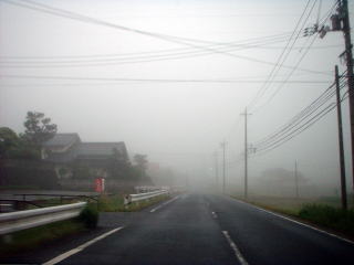 写真は今朝の霧に包まれた道路です。視界は100mくらいでした。南神立でも撮ろうと思ったのですがカメラの電池切れで撮れませんでした。
