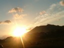 写真は今朝の朝日です。6時過ぎは肌寒い感じがしますが空は秋晴れで気持ちがいいです。でも寒いので暖房をつけて走っています。