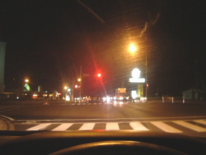 写真は帰りに撮った斐川町の交差点です。フロントガラスが汚れていたために見にくいかもしれませんがこの先から左に曲がって我が家への近道を走っていきます。