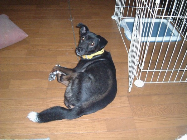 写真は最近腹具合の悪いシェルです。夜変な物(ごきぶり)を捕まえて食べているかも?