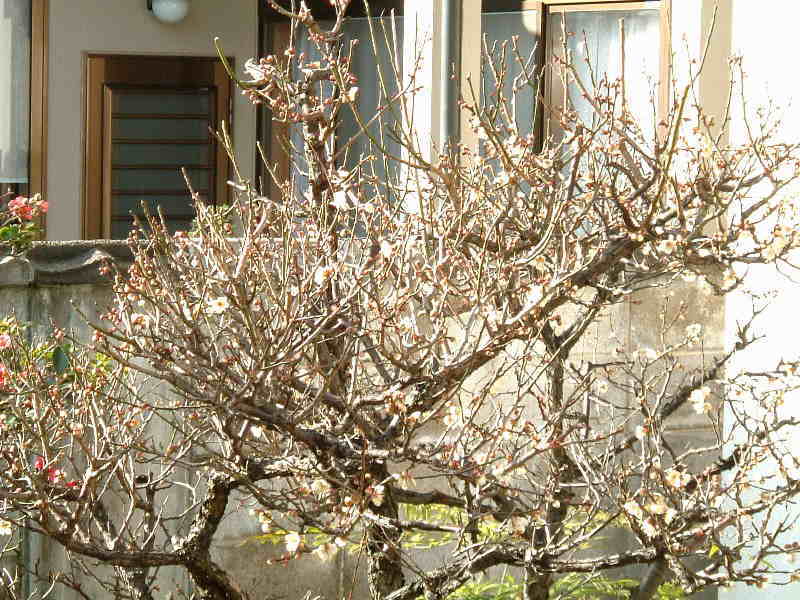 庭の梅の木のつぼみがだいぶ開いてきました。少し咲いたものもあります。東風吹かばの歌の通り春が近づいてくると咲いてくるものですね。