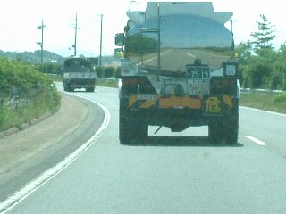 写真は昨日の中国道の一枚です。このトラックを追い越せとあっこさんに言っていましたが怖くて追い越しが出来ませんでした。理由はトラックに書いてあった「毒・危険」の文字が気になっていたからだそうです。