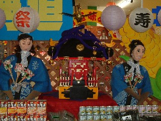 写真は店のイベントに使ったお神輿です。両脇の人形は衣料品担当の女性が作りました。