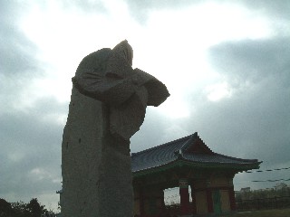 写真は途中で休憩したポート赤崎の横にある日韓友好公園にある石の風車です。