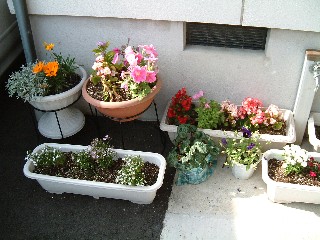 二階のベランダは水撒きが面倒だとあっこさんが言うので裏口で咲かせています。