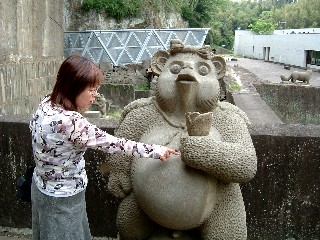 写真は来待ストーンのトンネルと石像です。