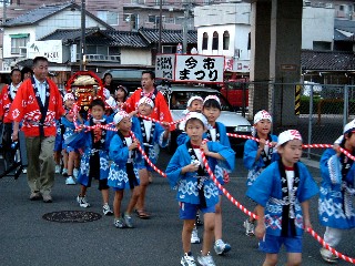 写真は昨日の祭りに繰り出した子供みこしです。全部で6基練り歩きました。