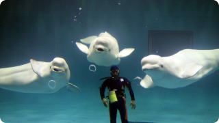 ペンギン館ではかわいい姿と水槽の中を泳ぐペンギンを見、そしてシロいるかのショーでは待望のバブルリングを見ることが出来ました。
