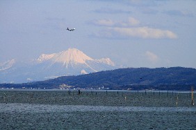 大山が綺麗に見えたのでカメラを構えると出雲空港へ降りていく飛行機が大山に差し掛かったので真上に来るのを待ってシャッターを切りました。