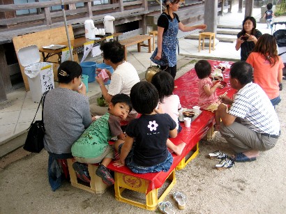 写真のように子供たちもたくさん来てぜんざいを食べていました。