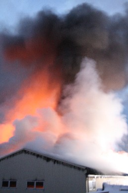 裏で人がざわざわする声が聞こえるので窓を開けてみたら、すぐ近くの漬物工場の倉庫から煙が出ていてびっくりです。