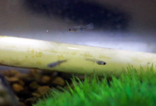 画像はいつに間にか生まれていたグッピーの稚魚です。