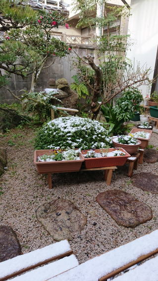 昨夜から強風が吹き荒れ寒いなと思っていたら今朝起きてみたら少しですが雪が積もっていました。