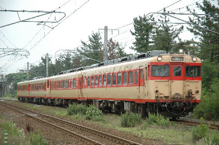 急行しらゆき 新津車 2007年にツアー列車の「急行しらゆき」が直江津〜酒田間で運転された。 |