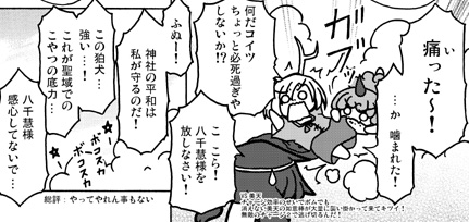 博麗神社を守るために最後まで必死の抵抗をしたあうんに対して