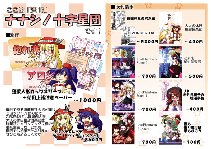 そして今後の予定ですがとりあえずは博麗神社例大祭には受かってますね、スペースは「た12b」になります。