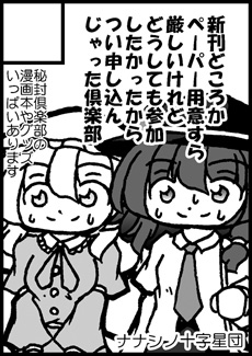 サークル参加致します。スペースは「く38b ナナシノ十字星団」になりますね。
