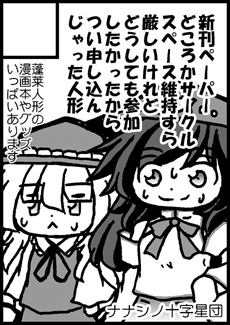 で、このままだと秘封島なのに萃香本になってしまいそうなので一応秘封成分と蓬莱人形成分も入れておきました。