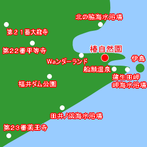 ![]() (地図はI・Eより拝借させていただきました) 椿園のレストランでは海のもの山のもの 旬の美味しい材料の食事に大満足です。 |