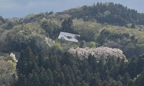 JR藤野駅付近まで来ると、相模川の対岸の山に置かれた巨大な手紙が見えます。