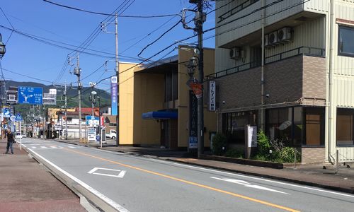 上野原宿に入ると道は直線になり、両側の建物も密度が高くなります。