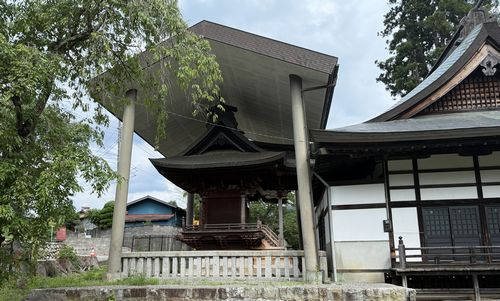街道沿いにあるいくつかの神社では、本殿を保護するための大きな屋根が設けられているのを目にしました。