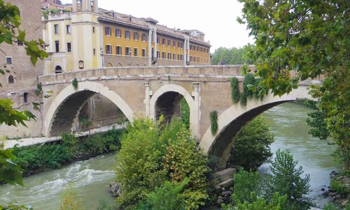ローマを流れるティベレ川に架かるファブリキウス橋は、紀元前62年に建設された石造アーチ橋で、現在は歩行者専用ですが現役の橋です。