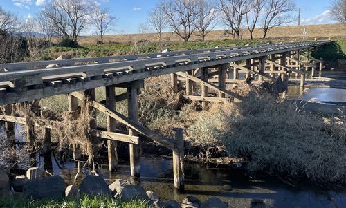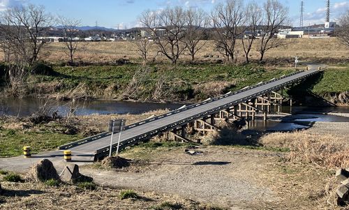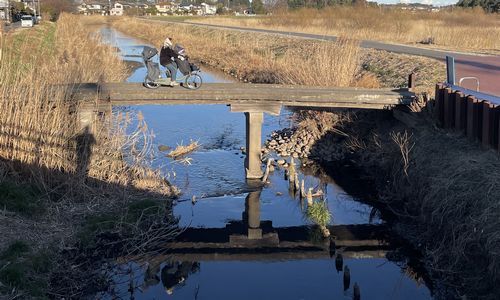 埼玉県内にもいくつか木橋は残っていますが有名なのは、坂戸市と東松山市の境を流れる越辺川(おっぺがわ)に架かる島田橋でしょうか。都幾川との合流点より1.5kmほど上流に架かる橋で、橋長77m、幅3mで坂戸市が管理しています。