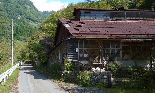 住む人がいなくなった鉱山村は、多くの建物が廃墟となっています。