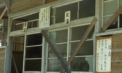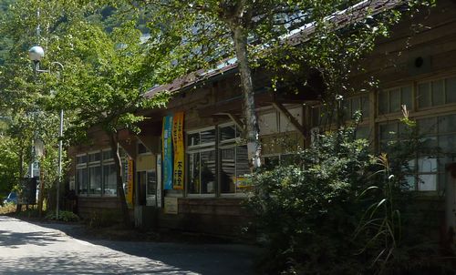 鉱山村のスーパーマーケット的な存在であった供給所の建物は、わずかに窓に残るコーラやファンタの宣伝によって辛うじて売店だったことがわかる程度です。