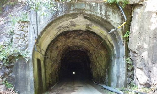 鉱山村のある小倉沢と南側にある広河原沢を結ぶ雁掛トンネルは、長さ399mもありますが幅が狭いうえに内空は素掘りのままで岩が露出しています。