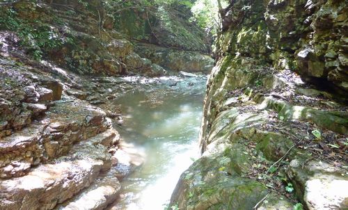 中津川三峰口停車場線が通る中津川渓谷は、紅葉の時期は観光客も訪れますが、それ以外の季節は地元の人が走る程度でひっそりとしています。