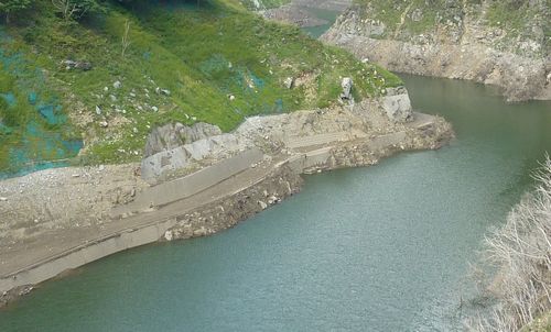 水没する道路は取り壊されなかったので、ダムが完成した後も渇水などで湖面が低下すると昔の姿を見ることができまが、すでに崩れ始めているので、いずれは道路の形が分からなくなりそうです。