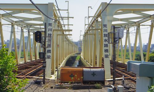 現在の荒川である荒川放水路は、明治期に旧・荒川のたび重なる洪水により大きな被害が発生したため、東京の下町を水害から守る抜本的対策として計画され、1911(M44)年に着手し1924(T13)年に通水しました。