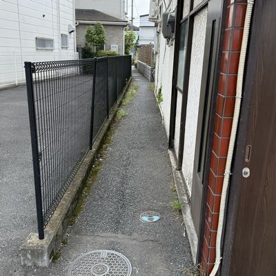 進むにつれて両側を塀とフェンスに挟まれ狭さが実感できますが、足元には砂利が敷かれ飛び石のようにブロックも置かれているので、安心して歩けるようになっています。