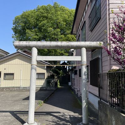 鳥居が立っているのは幅2mほどの参道の入口ですが、参道と言っても歯科医院の建物の裏面と駐車場、民家があるだけです。