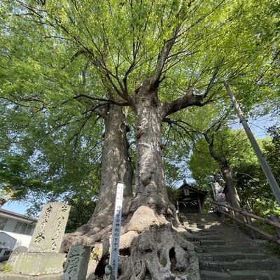 立派なケヤキは愛宕神社への階段の横にあり、御神木とされている二本立ちの大木です。
