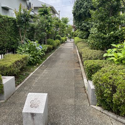 住宅街区内の道路は、通過交通が入り込まないように幹線道路への接続箇所を限定し、歩行者専用の緑道も設けられています。