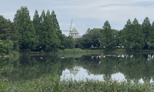 低平地ということもあり治水対策の一環として調整池を兼ねた広い公園もあり、樹木は大きく成長し水辺と大きな緑が水田が広がる地域で目立つ存在です。